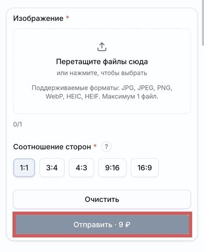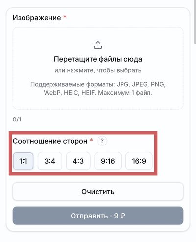 Если результат не устроил с первого раза, попробуйте загрузить фото с другим кадрированием или выбрать иное соотношение. Одна попытка = одна операция, чтобы начать заново, нажмите кнопку Очистить.