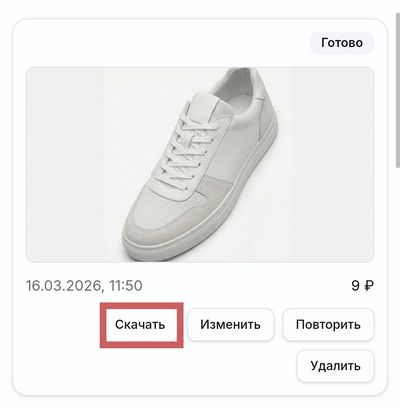 Когда нейросеть закончит работу, под результатом появится кнопка «Скачать». Нажмите её, и изображение сохранится в галерею вашего устройства.