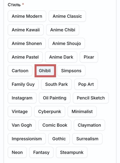 ✅ Смело пробуйте разные стили: один и тот же снимок выглядит по-разному в аниме и винтажном стиле.