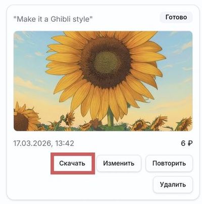 Готовое изображение появится ниже. Нажмите Скачать для сохранения на устройство. Нажмите Очистить, чтобы начать заново или с другим исходником.