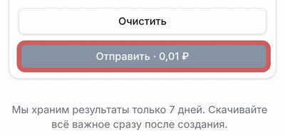 Нажмите кнопку Отправить. Стоимость будет подсчитана автоматически и будет показана на кнопке.