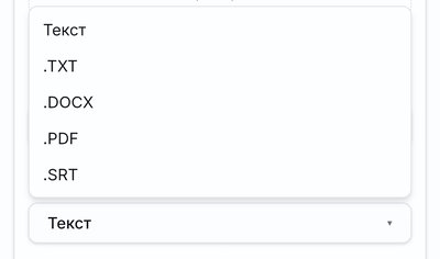 ✅ Экспортируйте в нужный формат сразу: SRT для субтитров к видео, TXT для конспектов, копирование для быстрой вставки в чат.