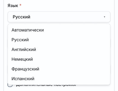 Для начала укажите основной язык звуковой дорожки. По умолчанию уже стоит русский, но нейросеть может справиться с английским, немецким испанским и французским.