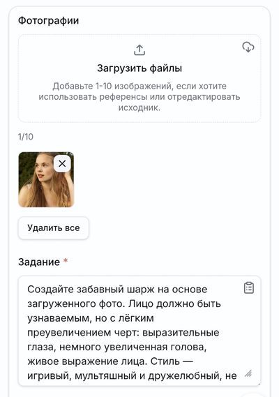 Сделать шарж: Главная → Нейросети → Фотостудия (Nano Banana Pro)