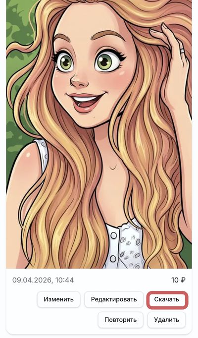Когда шарж готов, нажмите Скачать. Изображение сохранится в галерею устройства. При необходимости отредактируйте детали или измените задание.