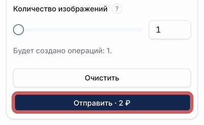 Укажите количество создаваемых изображений с помощью ползунка. Чем больше, тем шире выбор в результатах. На кнопке Отправить уже указана общая стоимость работы. Генерация длится около минуты.