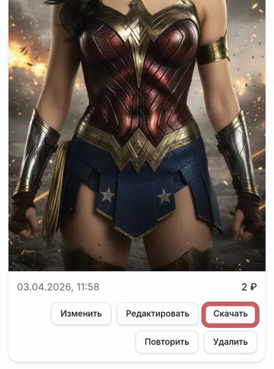 После генерации внизу появятся результаты и кнопка Скачать. Нажмите, чтобы сохранить на устройство.