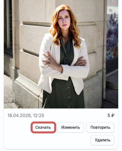 Нажмите на кнопку Скачать или измените исходные фотографии для повторной генерации.