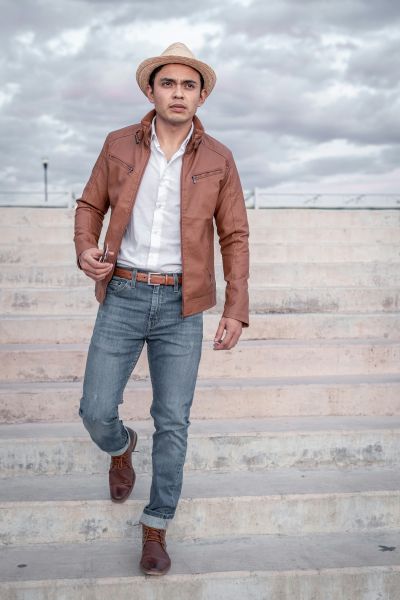 Замените одежду человека на изображении на целевую, представленную в эталонном. При этом сохраните позу, выражение лица, фон и общее реалистичное восприятие. Новый наряд должен выглядеть естественно, аккуратно и гармонично сочетаться с освещением и тенями. Не меняйте личность человека или окружение. Измените только одежду.