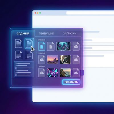 История заданий и генераций позволяет повторно использовать уже загруженный или сгенерированный контент. Это существенно ускорило работу с сайтом.