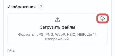 1. Кнопка сохранённых файлов рядом с полем загрузки.