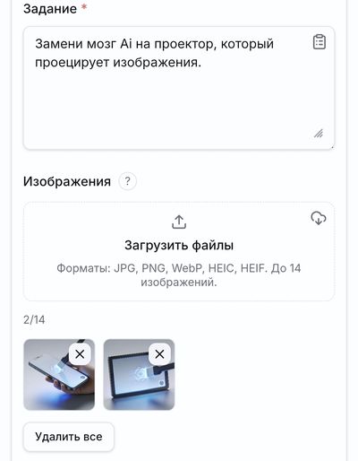 Файлы автоматически загрузятся, а задание скопируется в поле ввода. Если необходимо, внесите правки.