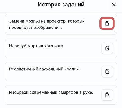 Здесь хранятся все ваши промпты. Выберите нужный и нажмите кнопку рядом для повторного использования.