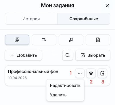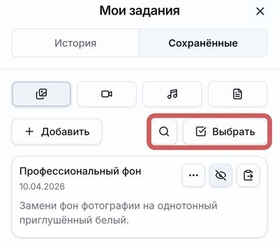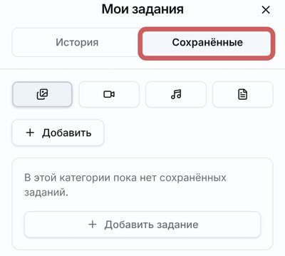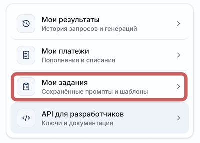 Далее найдите Мои задания, чтобы управлять всеми сохранёнными промптами в одном месте.