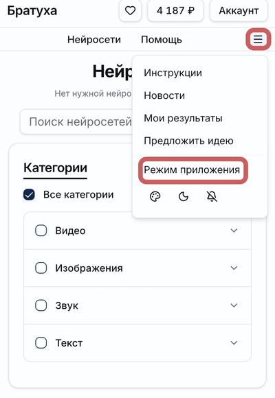 В этом случае режим приложения всегда можно включить из меню шапки сайта. Вот здесь: