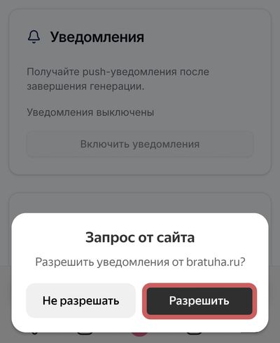 После запуска генерации вы можете спокойно заниматься своими делами. Как только результат будет готов (или произойдет ошибка), на вашем устройстве появится уведомление.